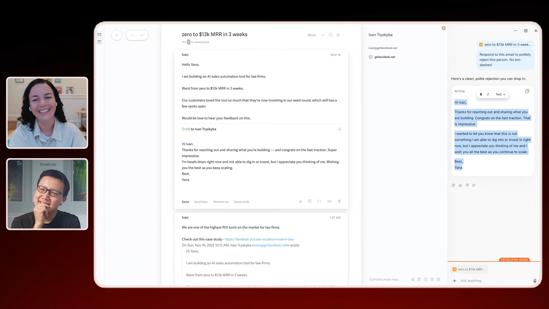 Candid advice from a serial founder on staying scrappy and being OK with mistakes. Plus full demos of Yana's best AI workflows to triage emails and aggregate customer feedback