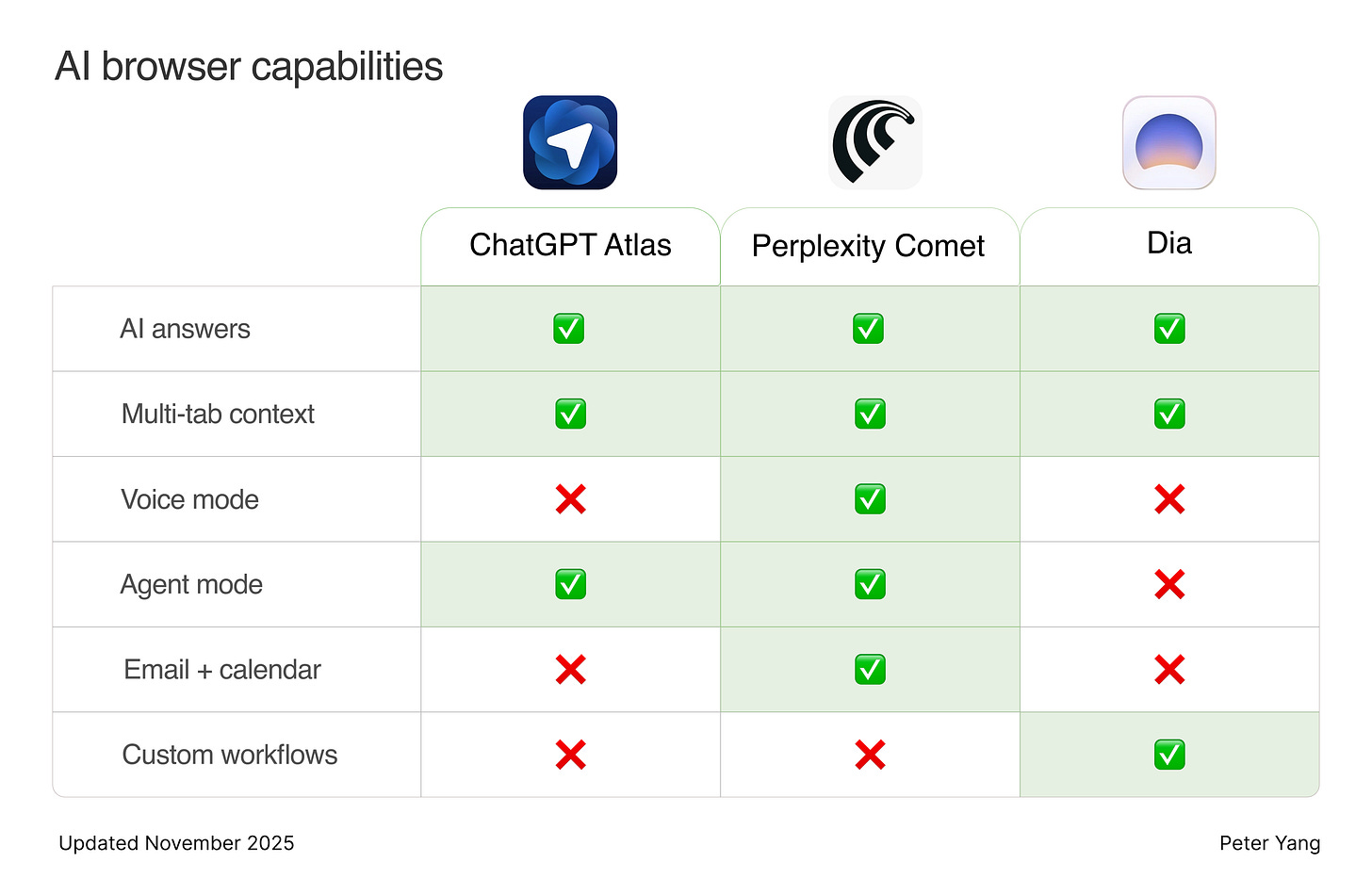 (00:00) OpenAI Atlas vs Comet vs Dia compared