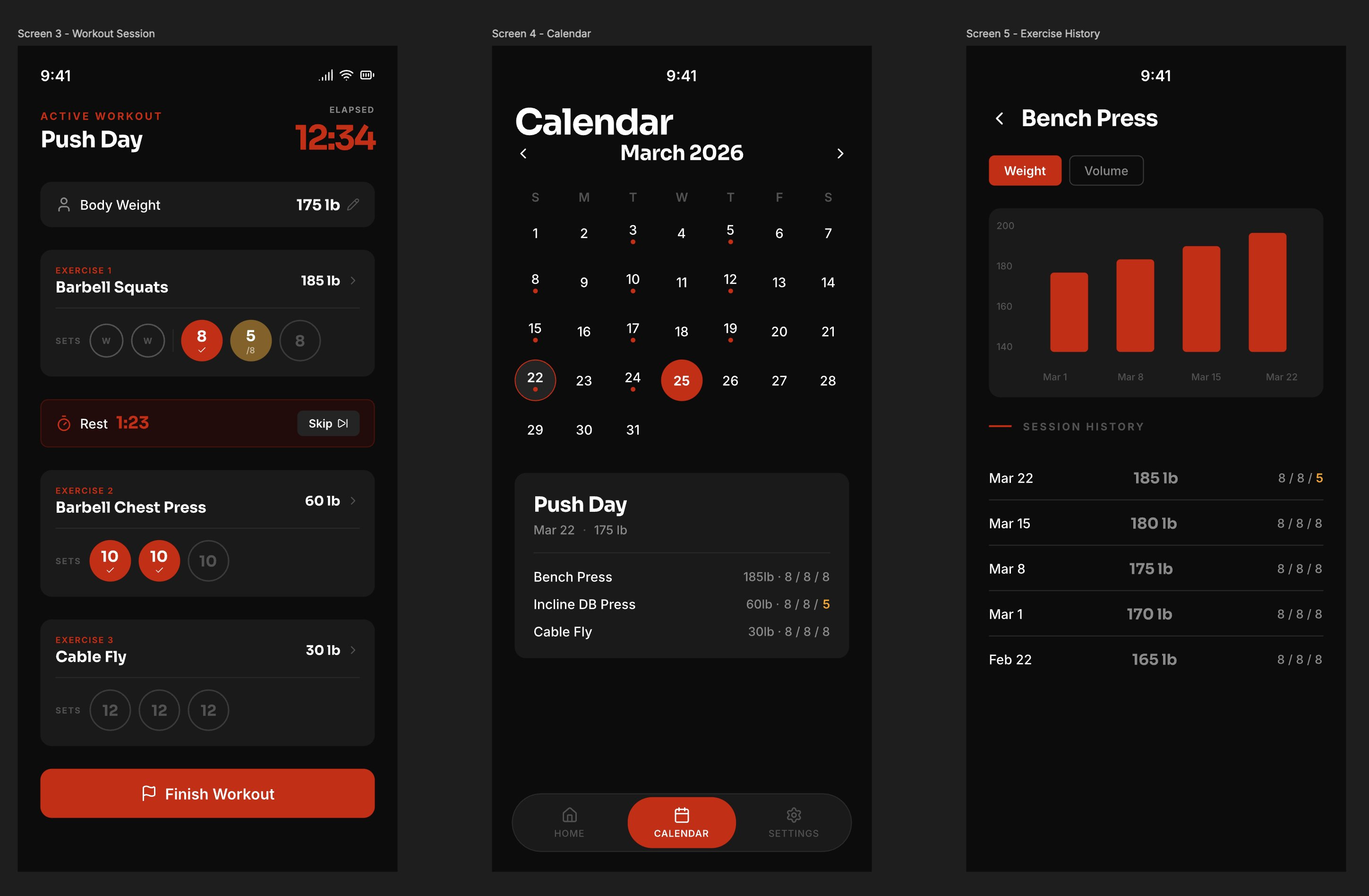 Let’s work together on requirements for a mobile fitness app. I want three screens: