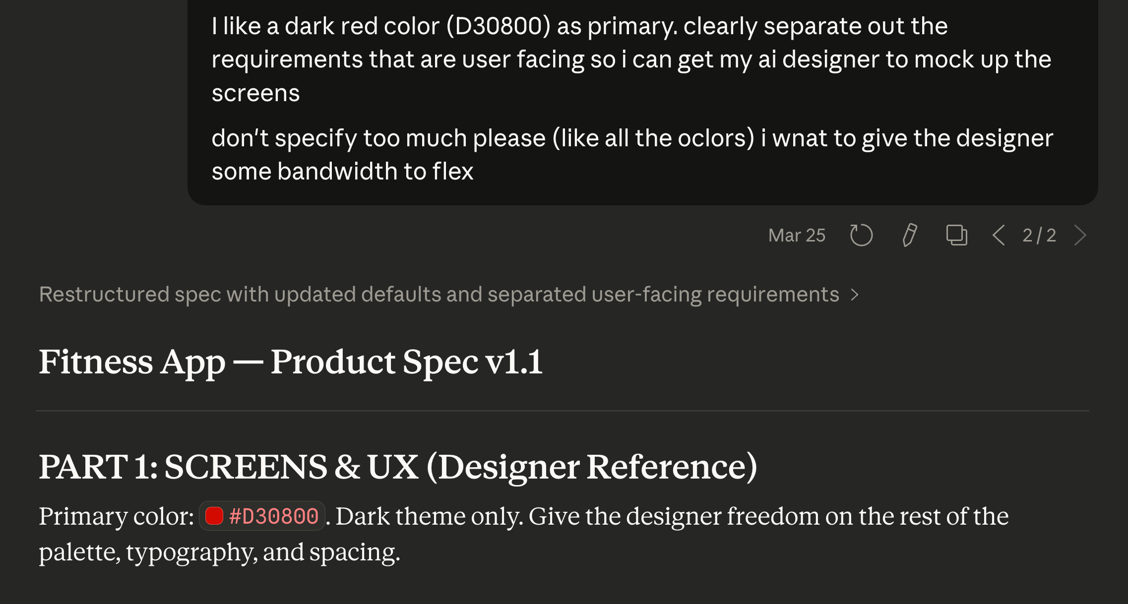“Split the spec into design and technical requirements. Don’t be too detailed on the design requirements so that it has room to flex.”