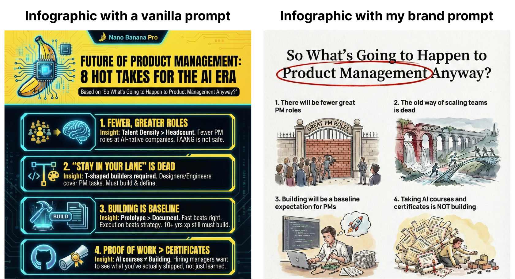 You can see the difference between the AI slop on the left and an infographic that you’ll actually want to share on the right. Let me show you how I did this below.
