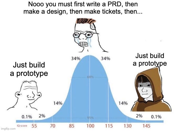 One caveat: I said prototype-led, not prototype-only. For complex products, you should still create a PRD and design to capture the milestones and edge cases. For simpler features, you can go straight from prototype to real product.