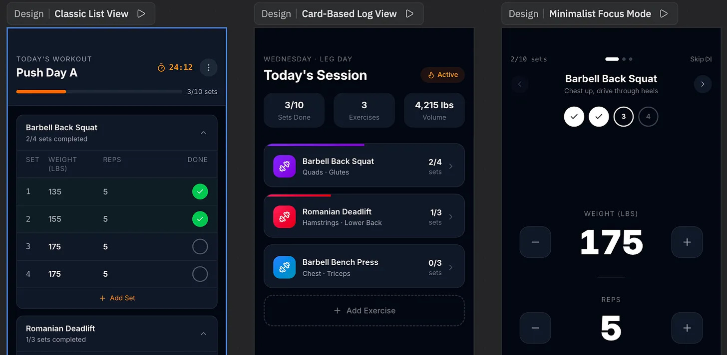 Creating multiple design variations on an infinite canvas (see above).