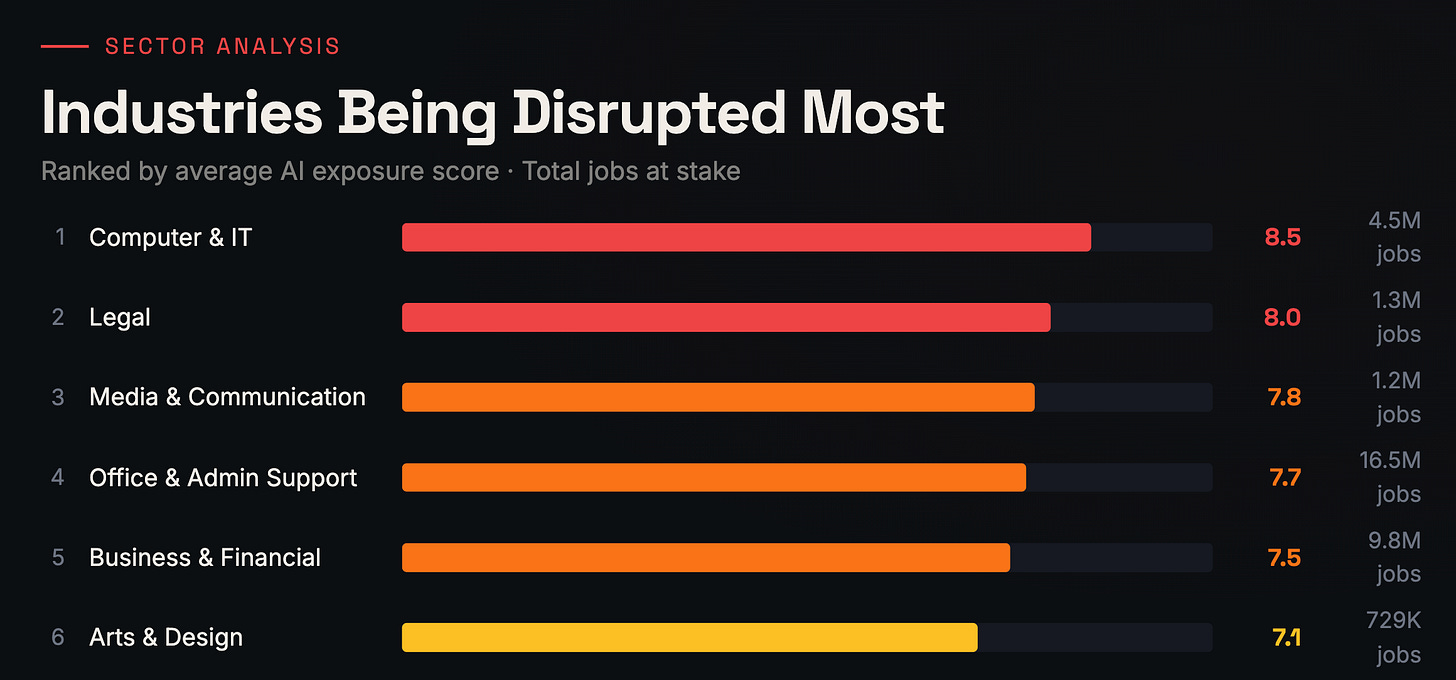 Replit's new Agent 4 can one-shot beautiful slide decks. For example, Karpathy published new data on which industries and jobs are most likely to be disrupted by AI.