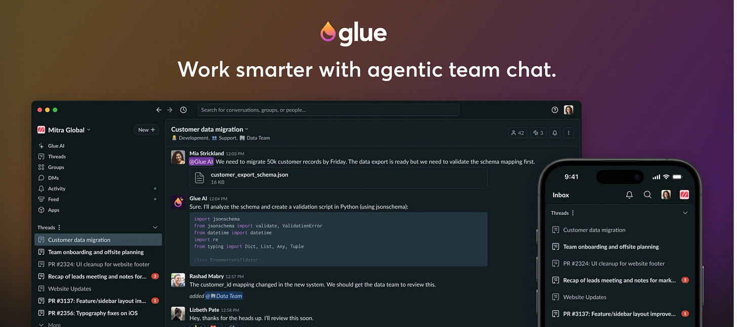 Glue is rethinking what chat can be if AI is built right into the conversation. It connects directly to your tools through MCP, so your team can plan, collaborate, and take action without switching context or losing focus. Try agentic team chat below.