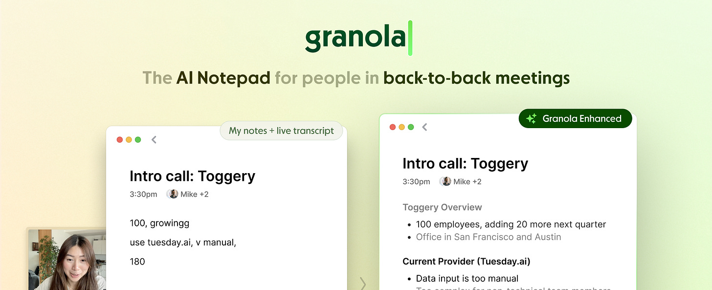 Granola is an AI notepad for meetings. The obvious pitch could have been “AI transcription,” but transcription alone is easy to copy and doesn’t create stickiness. Instead, Granola designed a strong user loop: