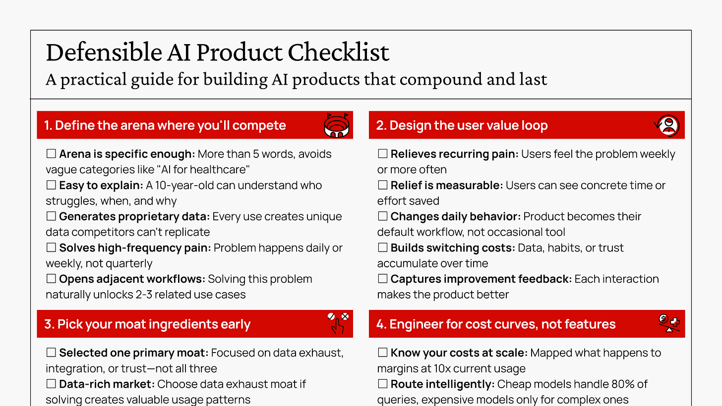 Too many leaders think of moats as something you add later once you scale. By then, it’s too late. In AI, you build your product with your desired moat in mind.