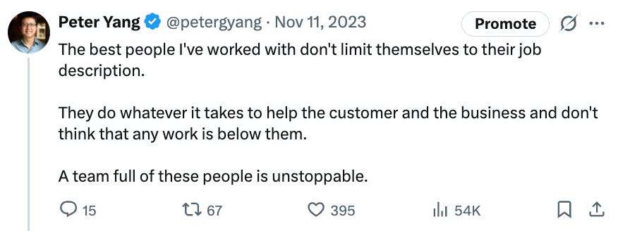 In the AI era, a PM who can’t build and an engineer who can’t define requirements will both struggle. If you’re still working at a company where you’re told to “stick to your lane,” then it’s probably time for a change.