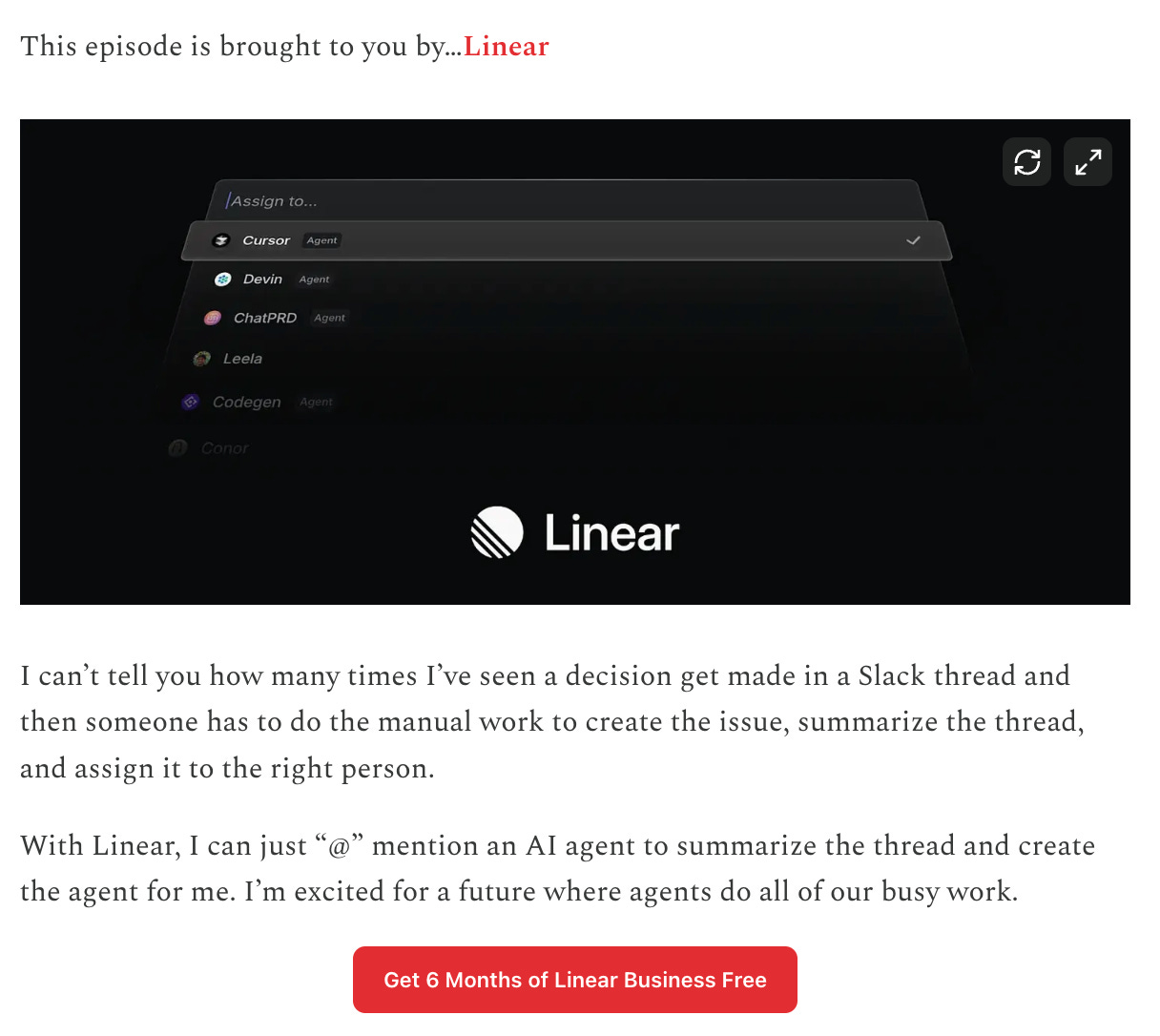 I publish a newsletter post every Wednesday and a new YouTube podcast episode every Sunday. Here are sponsorship opportunities for both: